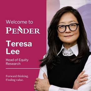 We’re pleased to announce that Teresa Lee has joined Pender as Head of Equity Research. She will also work with David Barr on the Pender Global Small/Mid Cap Equity Fund. Teresa brings over 25 years of investment management experience, with a focus in small-cap investing. She previously led small cap, all cap, and high-conviction strategies at Sionna Investment Managers where she spent 16 years, becoming Co-CIO in 2015. We believe that small cap equities are an area with significant potential to add value to client portfolios and Teresa’s arrival strengthens Pender’s active, fundamentals-driven small-cap investing capability, adding depth and breadth to our equity research and investment process. Read the full announcement here: https://bit.ly/3LTlP5k